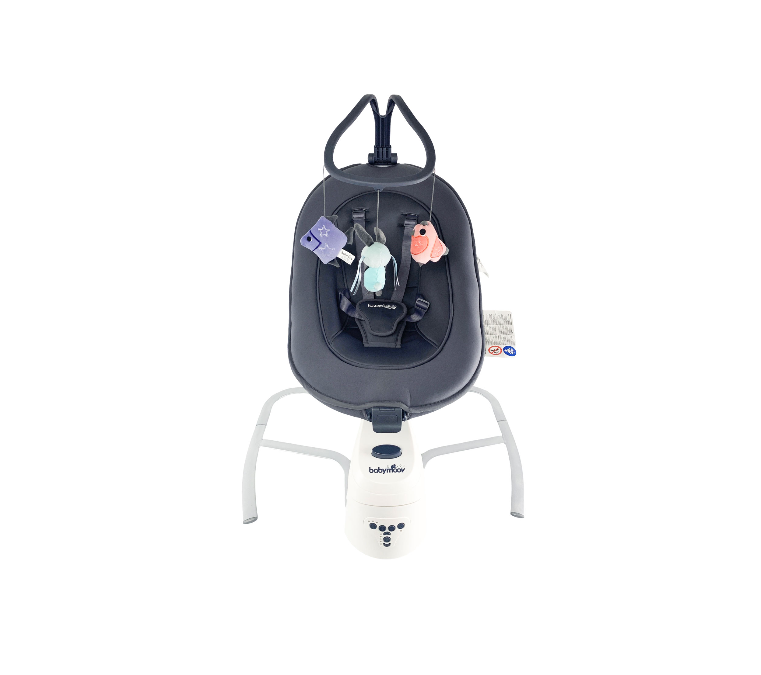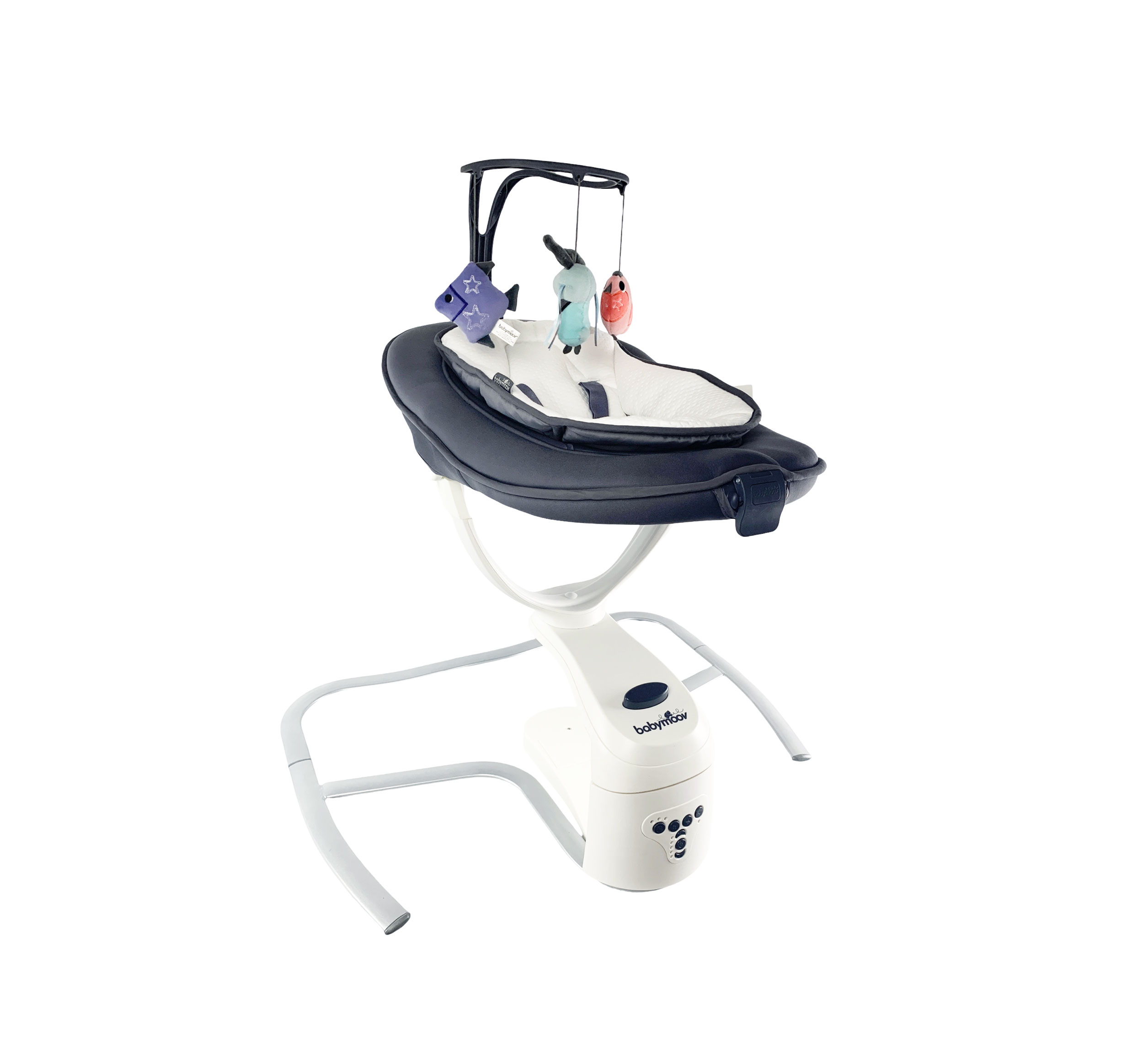 8 lullabies and sounds of nature with adjustable volume Play arch (3 sensory early learning toys: bell, mirror, and crinkly paper), adjustable to 3 positions Use up to 9kg 5 rocking speeds 2 rocking modes: side to side or back and forth 360° seat rotation system Motion detector: rocking is automatically triggered if the baby moves The seat can be adjusted to 5 positions: backrest (2 positions) and seat (3 positions) can be adjusted separately using one hand Newborn insert and cover can be removed and machine-washed at 30° 5-point harness The mains power adapter is included Swing can be dismantled for ease of transport Programmable rocking time: 10, 20, or 30 mins *This item includes only what is shown in the pictures listed on the Nextmom website.