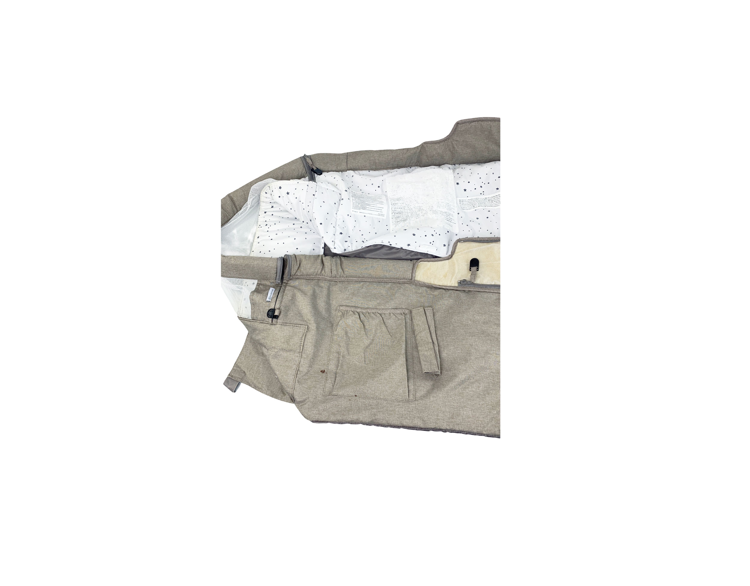No Box With Manual Manual - light visible crumpled, and discoloration on the cover page of the manual Carrying Bag - visible worn-out, discoloration, scratches, and a small visible tear on the surroundings of the fabric Mattress with Removable Lining - light visible discoloration on the removable lining (the brown board) - deformation on the mattress - light visible discoloration on the white cover Bedside Cot Cover - visible worn-out and faded labeling attached on the inner area of the cover fabric - light visible discoloration on the surroundings of the bedside cot fabric cover , both inner and outer area - small visible discoloration on the mesh and on the front side area of the fabric Frame Visible Scratches and Discoloration - on the frame where the height adjustment is located - on the surroundings of the swivel foot with a nonslip base and witha wheel on the central support - uneven pattern on the wheel's surface
